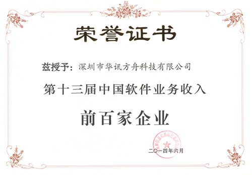 工業和信息化部運行監測協調局6月12日在青島市發布了2014年(第十三屆)中國軟件業務收入前百家企業(簡稱軟件百家)名單,華訊方舟集團入選2014年中國軟件收入百強,排名55位?! ?/div>