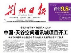 8月11日,荊州電視臺(tái)再次采訪并報(bào)道了華訊方舟科技(湖北)有限公司竺橋工業(yè)園和中國(guó)天谷荊州項(xiàng)目進(jìn)展。 報(bào)道稱(chēng),近兩年荊州的電子信息產(chǎn)業(yè)異軍突起,其中塊頭最大,投資最多